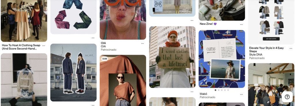 A plataforma desenhou uma experiência para o usuário “caçar” estilo, navegar por estéticas e comprar itens second hand com narrativa editorial, do jeito que o Pinterest sempre soube fazer.
